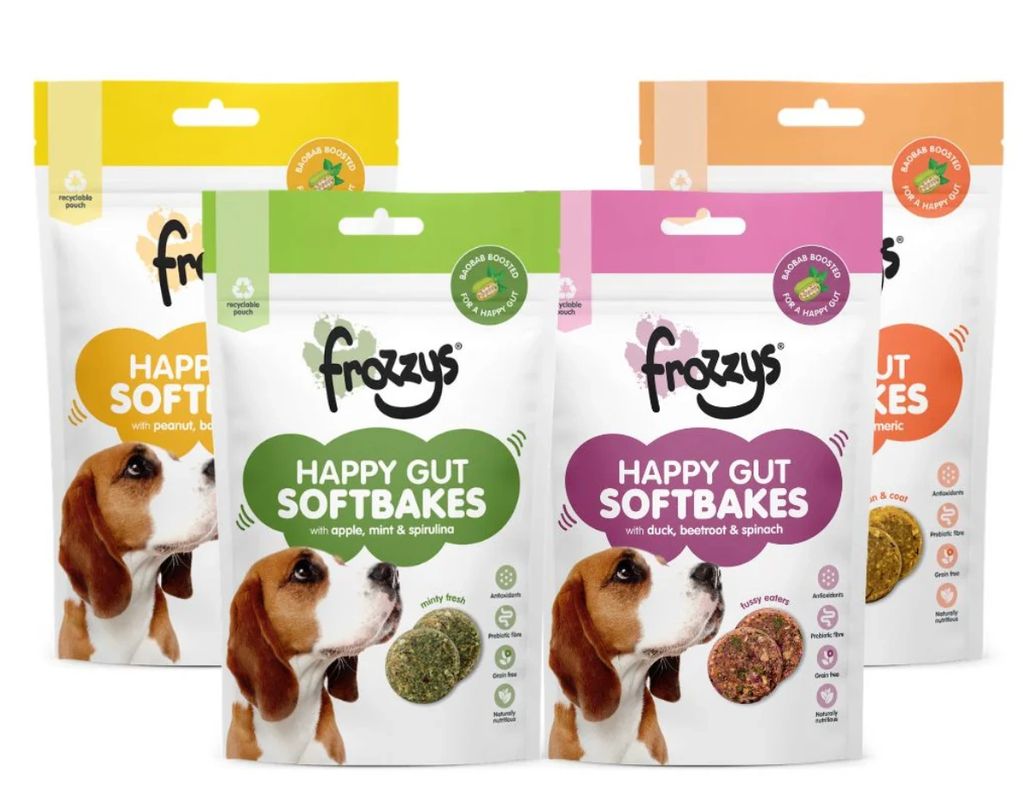 Frozzys Happy Gut Softbakes are natural, soft & chewy treats for a happy gut. Boosted with Baobab, Softbakes boast the following benefits for your dog: